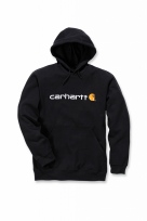 Bluza Carhartt Signature Logo Midweight dla jeszcze większej wytrzymałości i zachowania miękkości materiału wykonana została z mieszanki bawełny i poliestru w proporcji 50%/50% o gramaturze 356g/m². Posiada kaptur ściągany sznurem, nadruk na klatce piersiowej z logo w kolorze Carhartt Gold, dwie pojemne, ciepłe kieszenie przednie, wzmacniane elastanem ściągacze w mankietach i w pasie