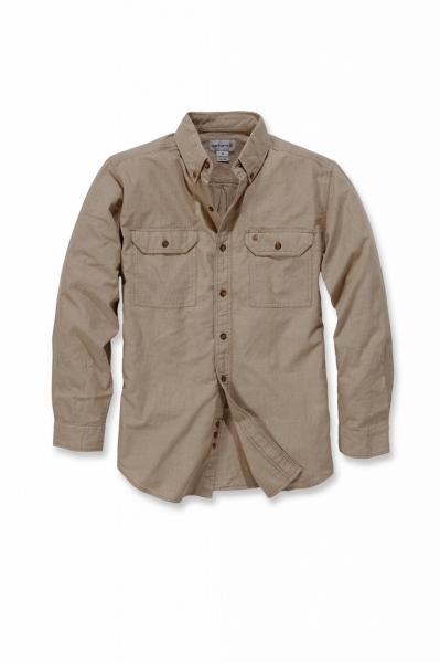 Bardzo miękka koszula Carhartt Fort Solid Shirt wykonana jest z wysokogatunkowej bawełny o gęstości materiału 152g/m². Kołnierzyk zapinany na guziki, dwie kieszenie na piersi z klapką zamykane na guzik.